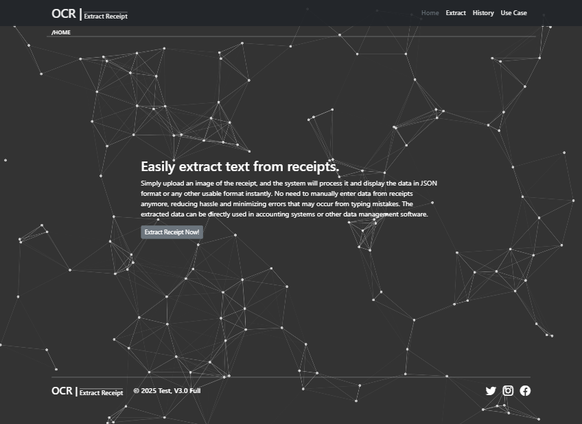 This OCR system uses Vue.js as the frontend and Flask API as the backend for uploading and processing JPG, PNG, and PDF files. The files are sent to Gemini for data analysis and stored in SQLite. If the file is a PDF, the system will convert it to JPG first and then send it to Gemini for analysis. Vue.js will receive the results and display them to the user.
